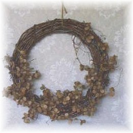 最初市販の材料だけでしたが、トールペイントした小物を組み合わせたり庭で拾った自然の実やつるもとても良い素材になりました。
